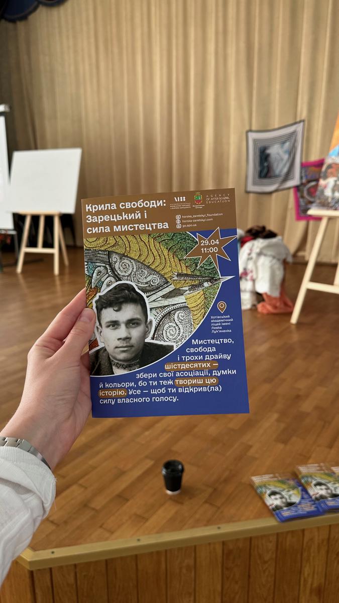 У Хотівському ліцеї імені Левка Лук’яненка, на Київщині, відбувся натхненний мистецько-освітній захід для учнів та учениць старших класів Феососіївської громади «Крила свободи: Зарецький і сила мистецтва», присвячений 100-річчю від дня народження художника-шістдесятника Віктора Зарецького. Подія стала спільною ініціативою Фонду Алли Горської та Віктора Зарецького, ГО «Агенція позашкільної освіти» та Відділу гуманітарного розвитку Феодосіївської сільської ради.