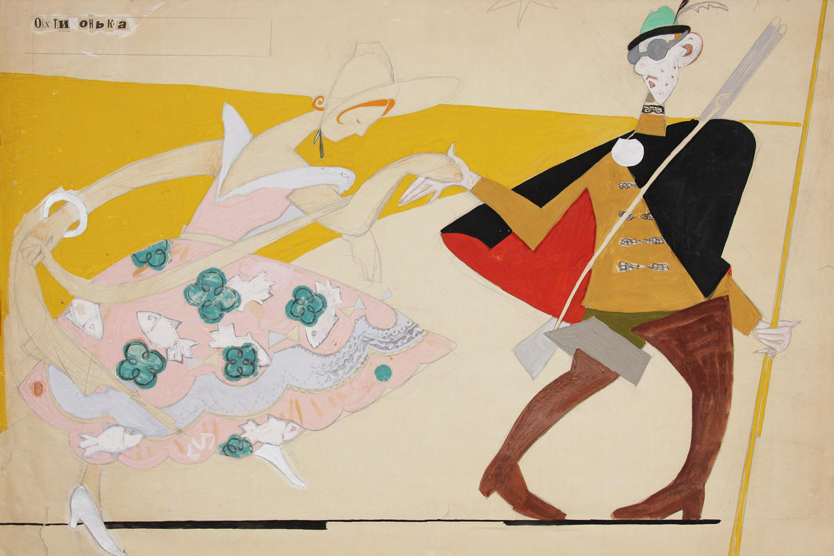 У роботі над ескізами художниця використовувала техніку колажу з кольорового паперу, буклетів, рекламок тощо. Це нагадувало твори художників 20-х років, спадщину яких тоді починали відкривати наново. Театральні роботи призабутого українського митця Анатоля Петрицького вразили молоду художницю і, безумовно, вплинули на її сценографічний почерк. Відкритий гротеск, конструктивістський характер вирішення костюмів і декорацій були на той час сміливими і цікавими. Виражені образотворчими засобами комічний фарс, сатира виливались у яскравий образ вистави за п’єсою Куліша.