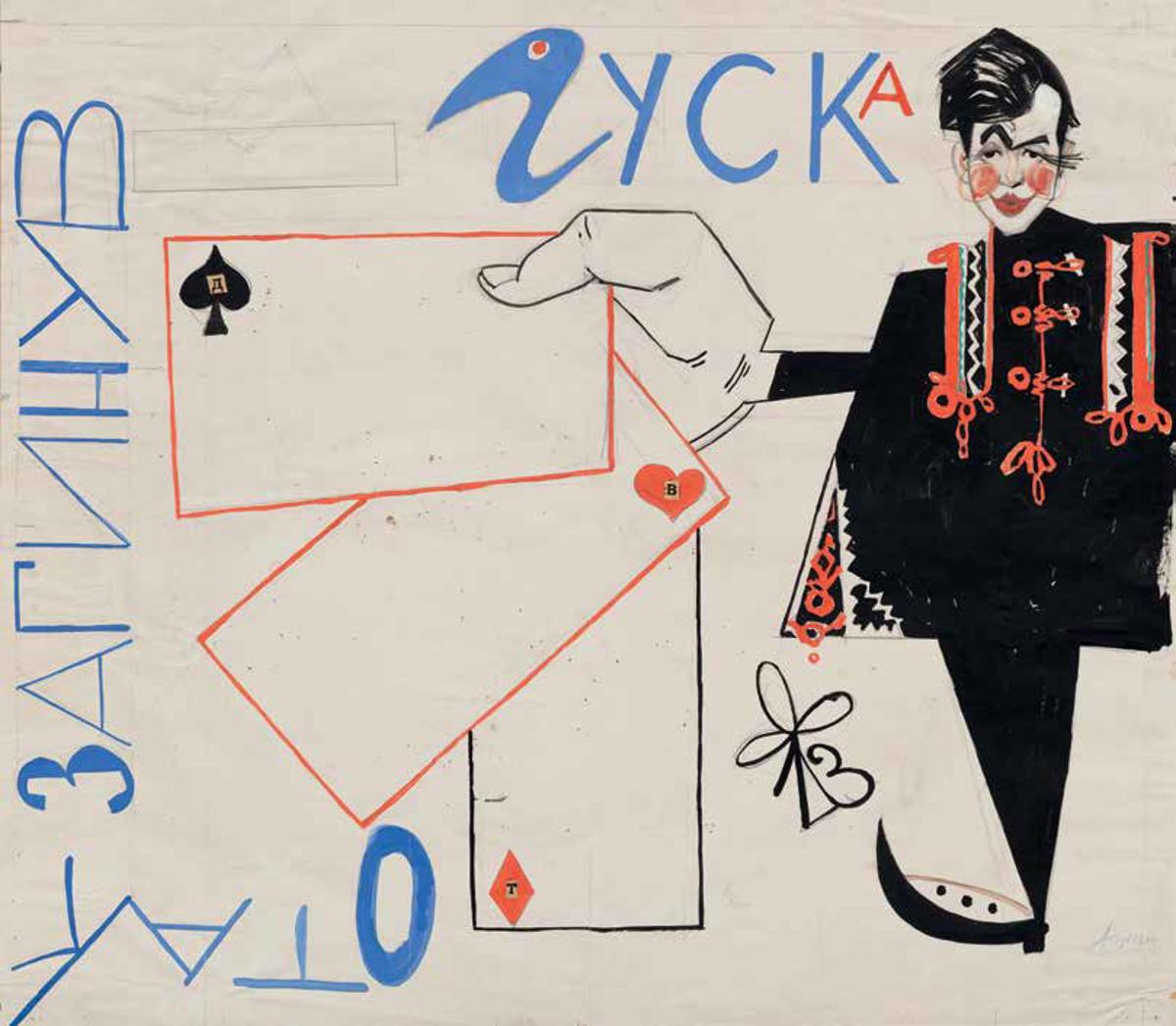 До речі, такі ж умовні гральні карти фігурували у стіннівці, виготовленій Аллою. Причому карти тримав у руках Танюк, зображений у своєму розкішному сердаку, на який бігав дивитись увесь Київ.